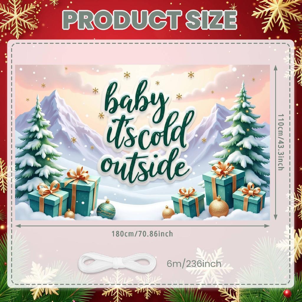 Cold Outside Banner Gift Box Winter Backdrop Christmas Backdrop Green Lettering Xmas Banner For Holiday Celebration Christmas