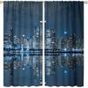 Modern Curtains, New York City Skyline with A Skyscrapers At The Night with Sunset American Urban Li for Living Rooms and Bedrooms Drapes 2 Panels