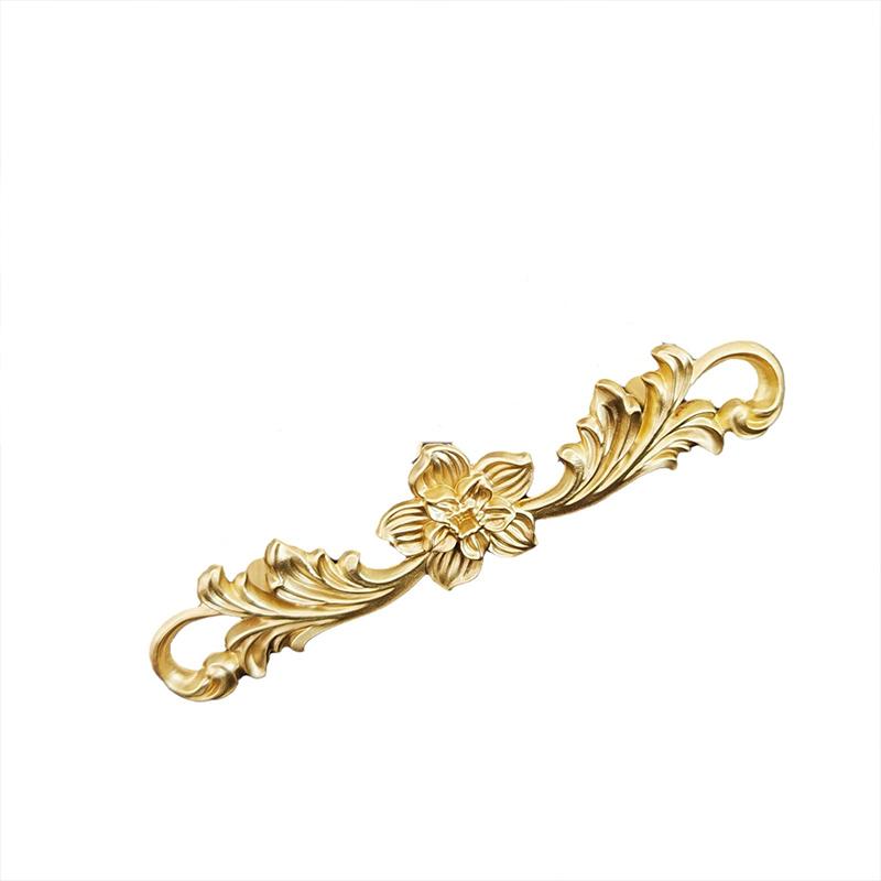 1Pcs Brass Drawer Handle, Patterned Flower Bar Handles, Vintage European Style, Hand-held Closet Door Pulls