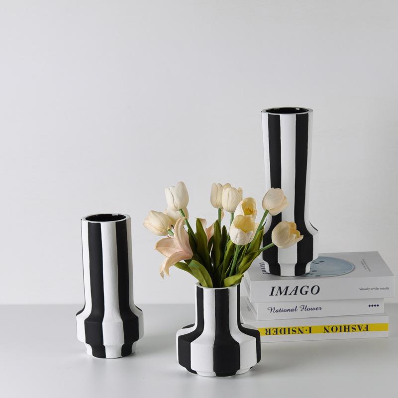Modern Black-and-white Striped Ceramic Vases Flowers Flower Arrangements and Table Decorations for The Living Room Coffee Table