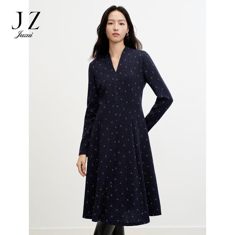 JUZUI Women's V-Neck Jacquard Knit Waist Dress