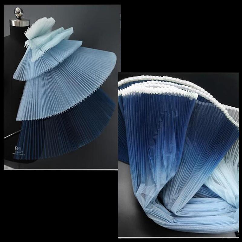 Stiff Accordion Pleated Mesh Tulle Fabric Gradient Pleated Designer Fabric For DIY Sewing Bubble Skirts Fashion Dress Background