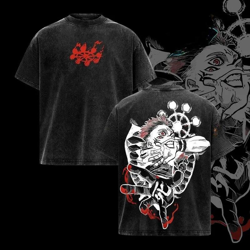 Hot Anime Jujutsu Kaisen Ryomen Sukuna Clothing Men Women Short Sleeve Tshirts Washed Cotton Tee Retro T-shirt Harajuku T Shirt