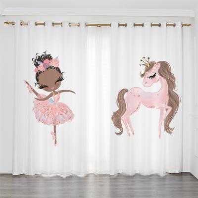 2 Panel Pink Unicorn Curtains Ballerina Girl Curtains for Kids Girls Bedroom Window Blinds Floor-to-ceiling Windows Grommet Top