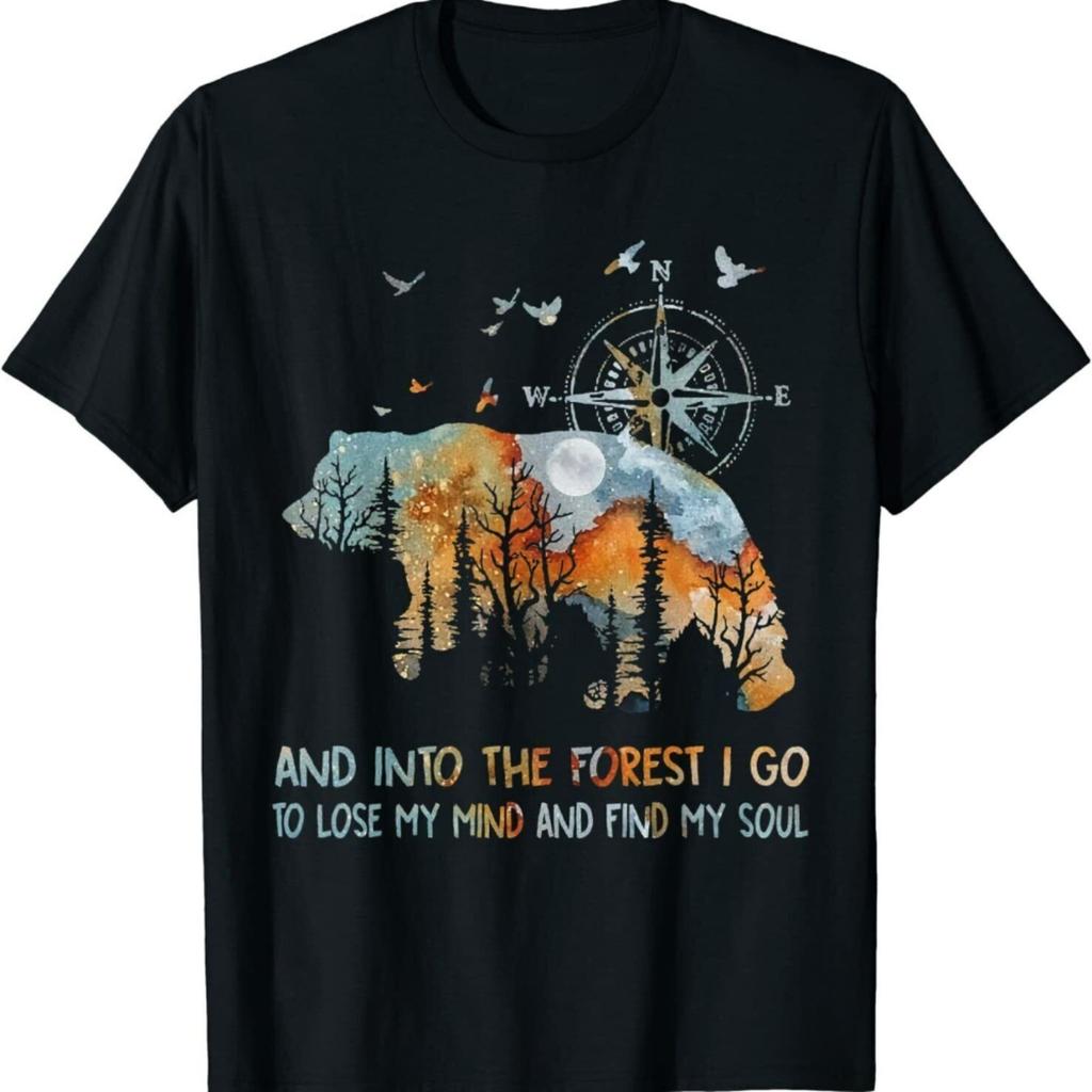 Bear and Compass Graphic T-Shirt 100% Cotton O-Neck Short Sleeve Summer Casual Mens T-shirt Streetwear