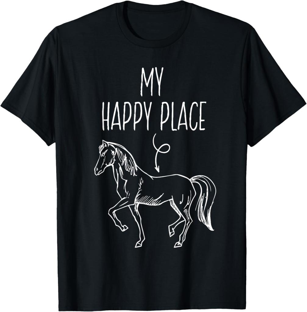 My Happy Place Horse Graphic Tee Breathable Cotton T-Shirt Equestrian Riding Gift