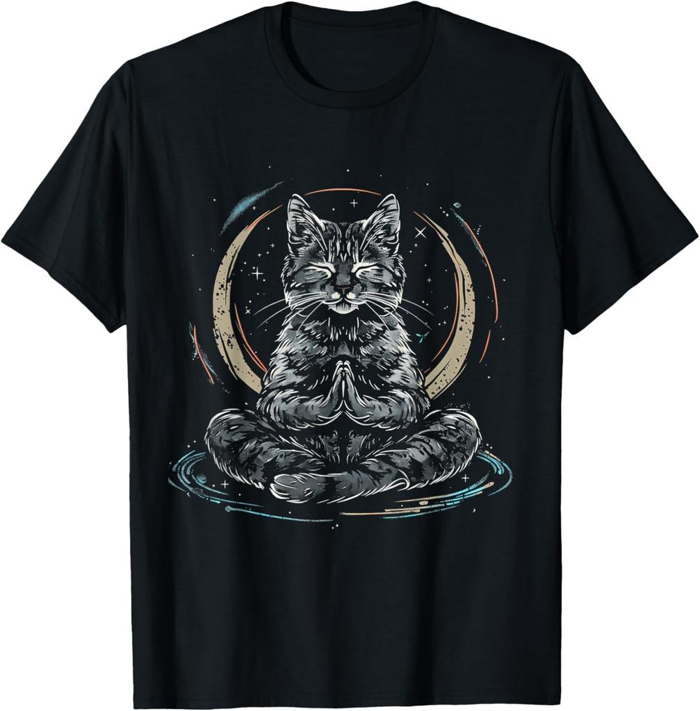 Cosmic Meditation Cat Spiritual Yoga Zen Buddha Graphic Tee Men's Casual Cotton T-Shirt