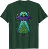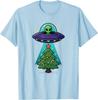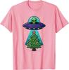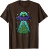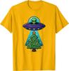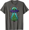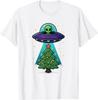 Alien UFO Abduction Christmas Tree Graphic Tee Funny Holiday Casual Cotton T-Shirt