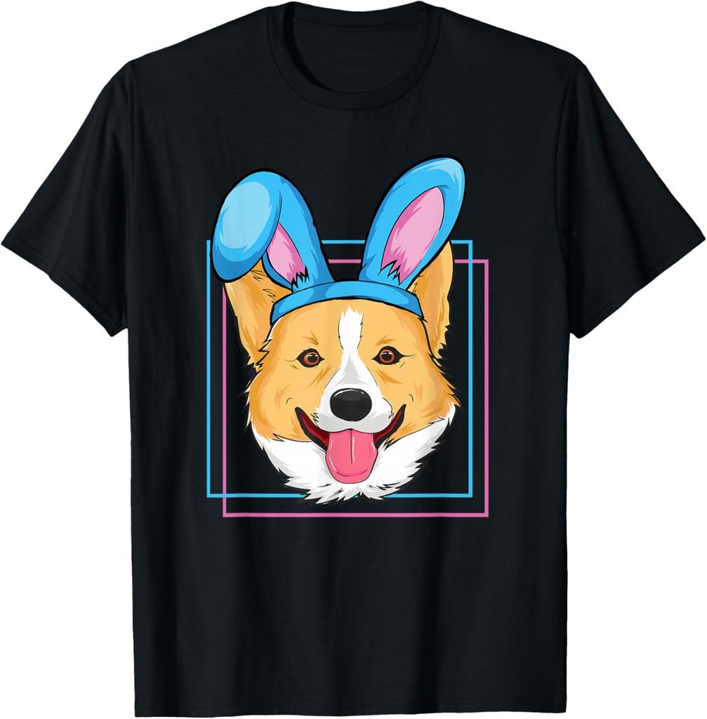 Corgi Wearing Bunny Ears Easter Egg Hunting Dog Lover Graphic T-Shirt Casual Cotton Short Sleeve Tee