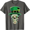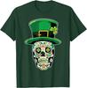 Sugar Skull Leprechaun Hat St Patricks Day Graphic Tee Soft Cotton Casual Top for Men