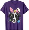 Border Collie Bunny Easter Eggs Dog Lover Graphic Tee Men Casual Trip T-Shirt