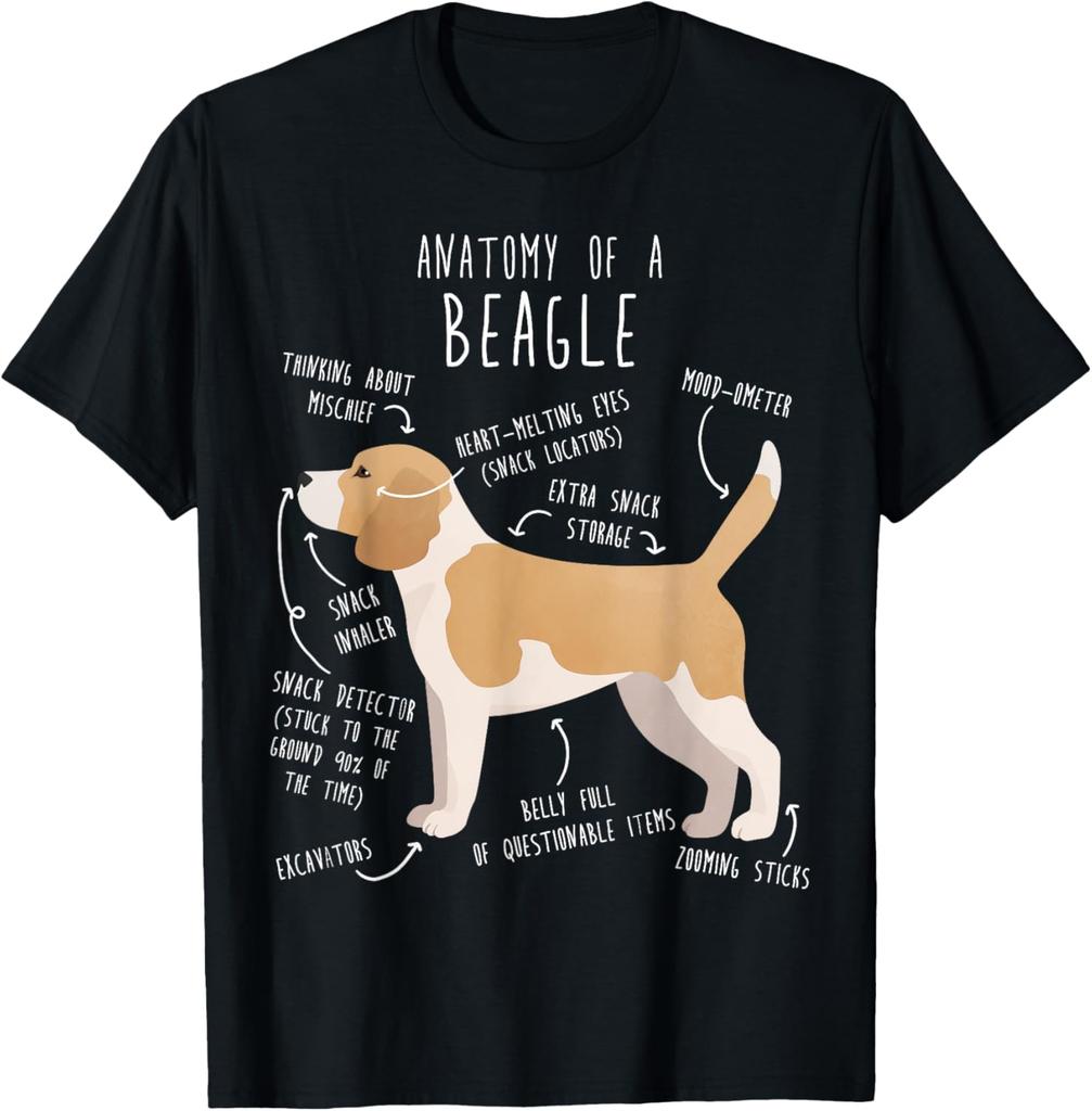 Anatomy of a Beagle Funny Dog Lover Graphic Tee Cotton Casual Short Sleeve T-Shirt for Men