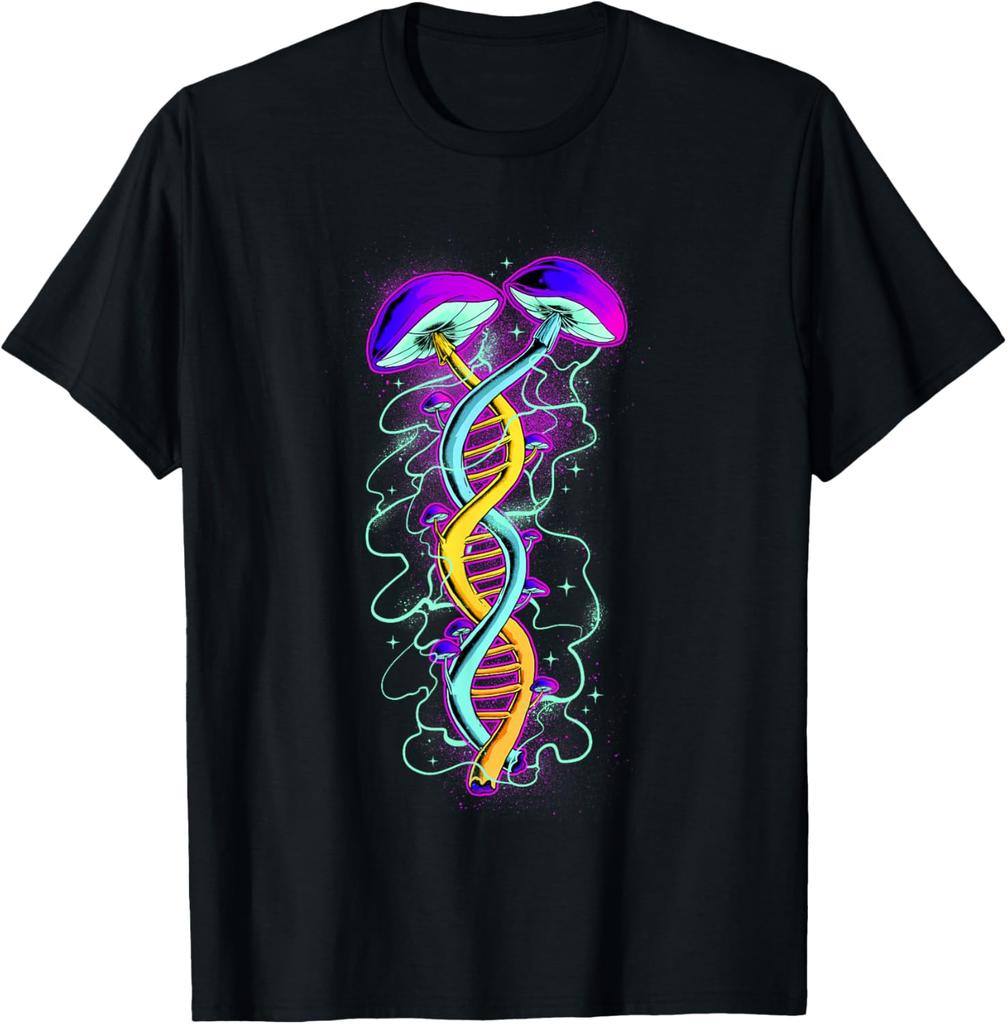 Psychedelic Mushroom DNA Double Helix Graphic Tee Men Casual Trip Breathable T-Shirt