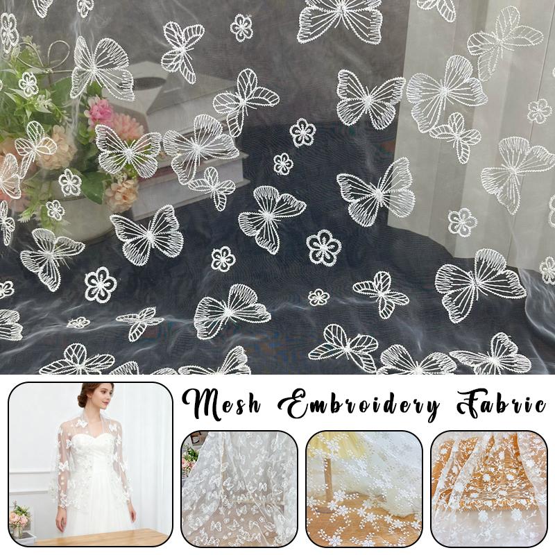 1 Yards Embroidery Fabric White Floral Mesh Lace Fabric For Diy Women Wedding Bridal Dress Cheongsam Lolita Clothes