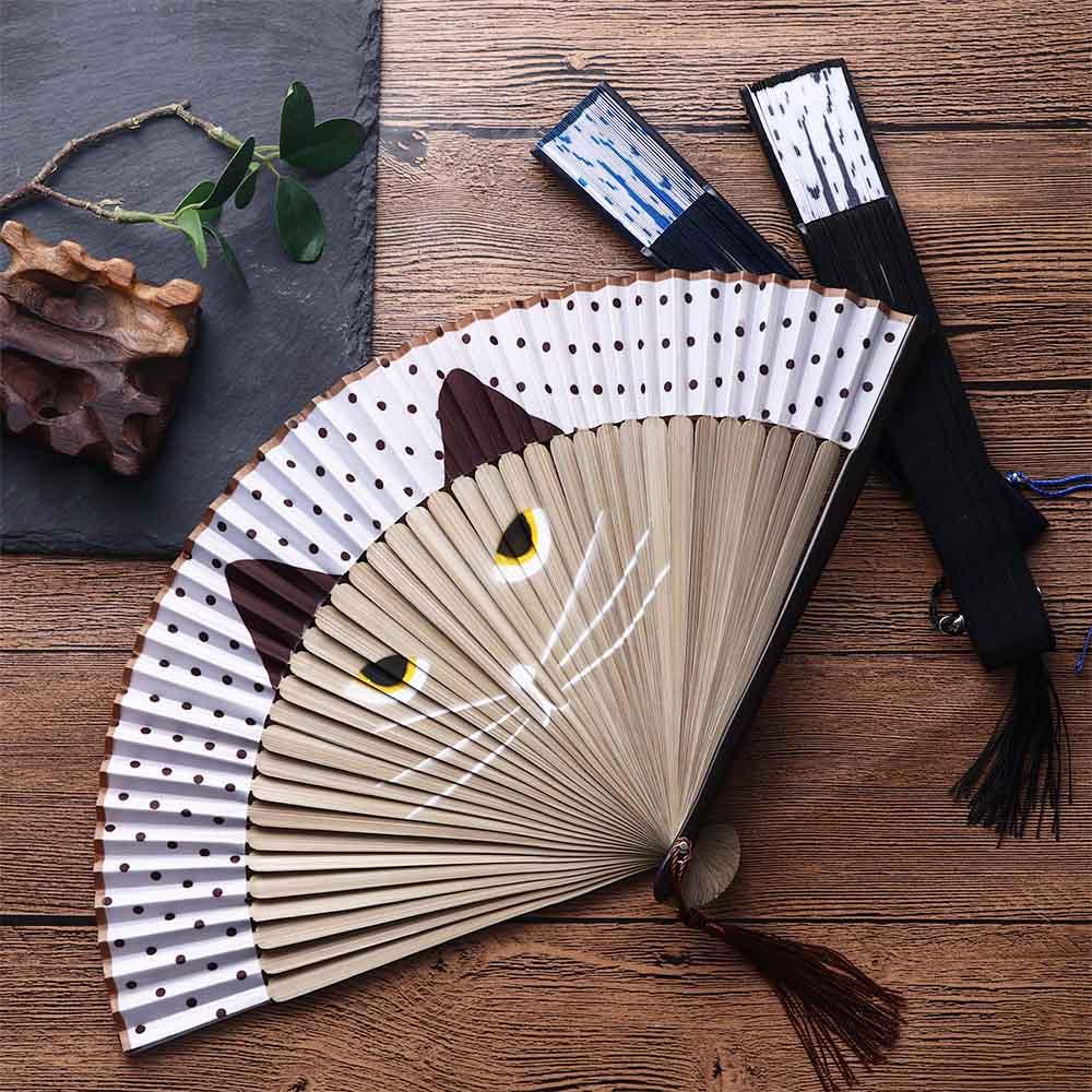 Quality Exiquisite Bamboo Wooden Cartoon Handmade Summer Gift Home Decoration Folding Fan Silk Fan Fan Crafts