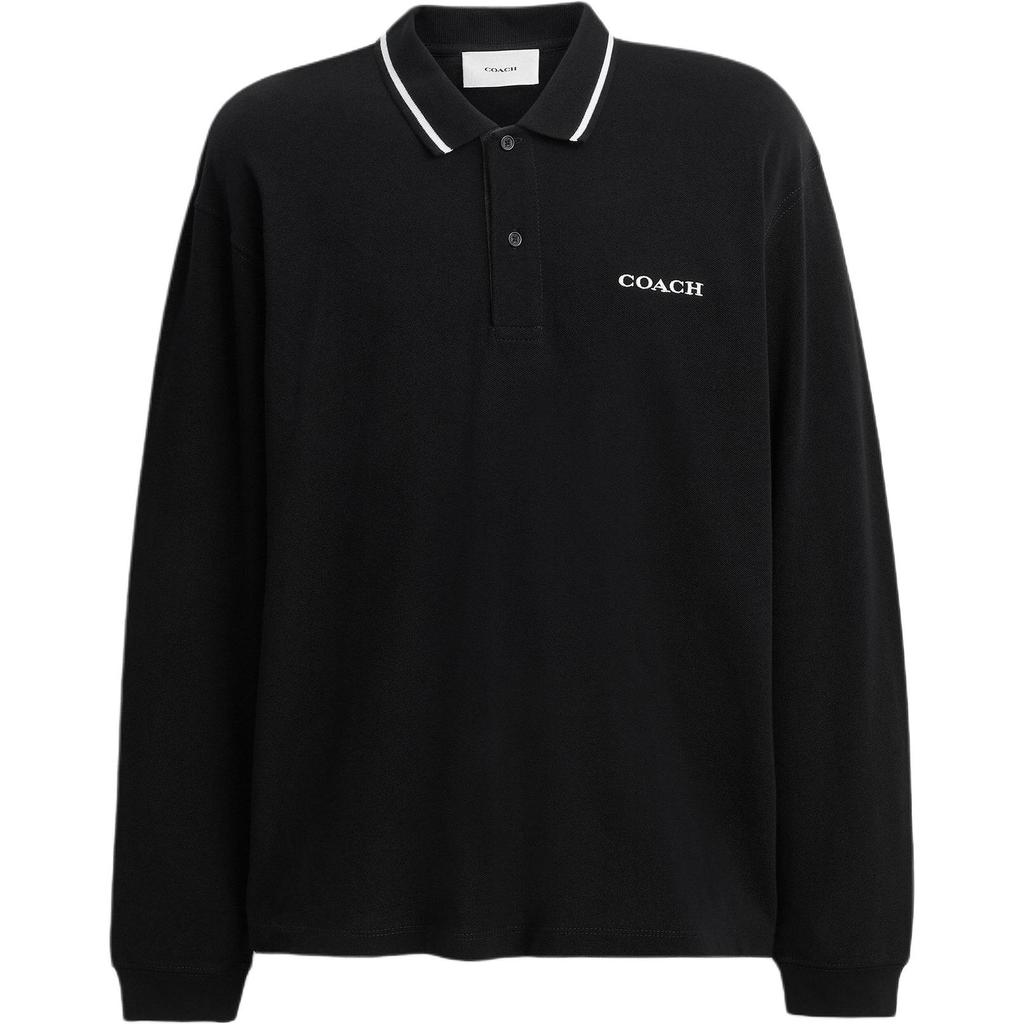 Coach Classic Logo Trim Long Sleeve Polo Shirt Men Tops CCU12-BLK