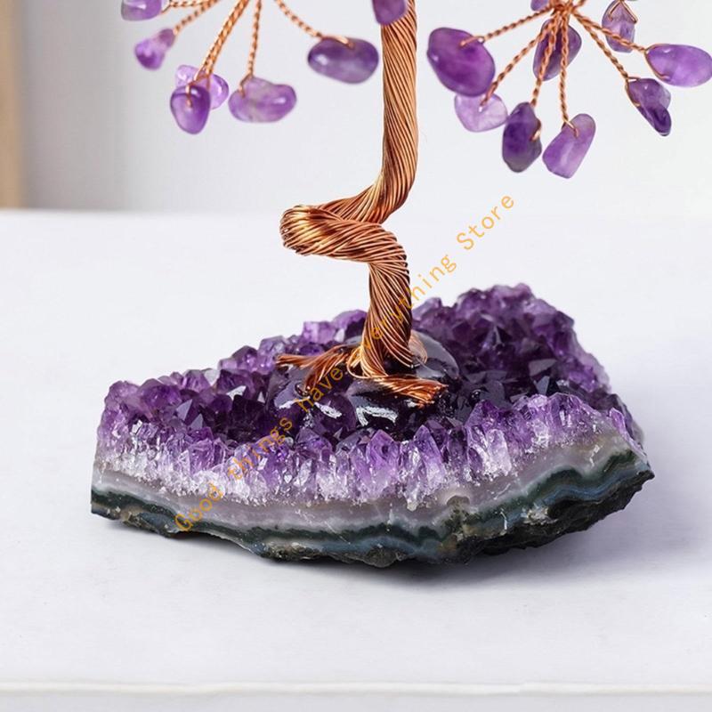 55KF Crystal Money Tree with Amethysts Cluster Base for Home Office Desktop Decors