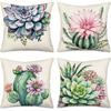Succulent Cactus Floral Pillow Covers 22 X 22 Inch Set of 4 Tropical Green Plants Flower Summer Decorative Throw Pillow Case Cotton Linen Square