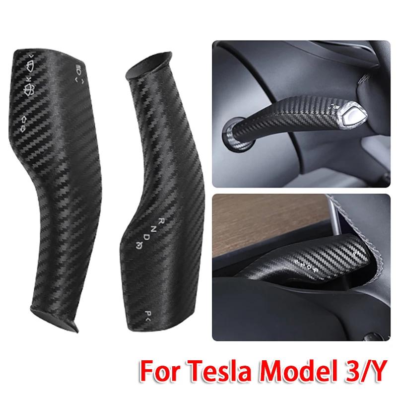 2pcs ABS Carbon Fiber Car Gear Shift Knob Trim Cover for Tesla Model 3/Y