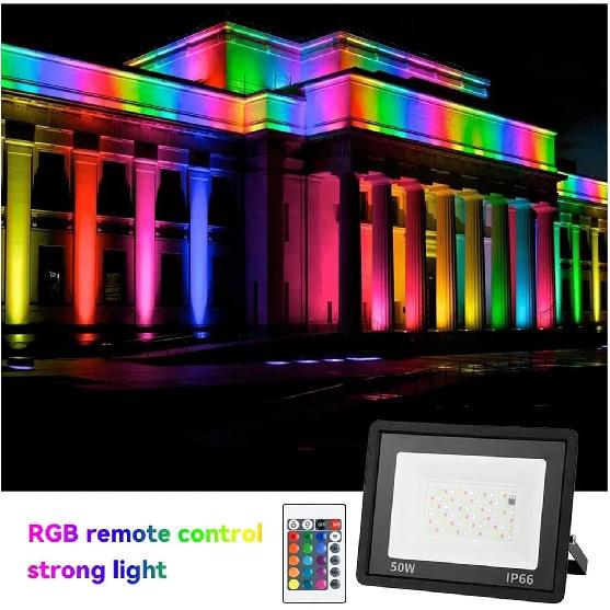 LED RGB Floodlight Reflector Outdoor Lighting AC 220 20W 30W 50W 100W IP66 Waterproof Outdoor RGB Spotlight Landscape Lighting for