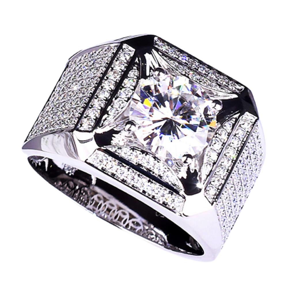 2026 Luxury Full Diamond Wide Edition Gentleman's Ring with Zircon Engagement Ring Sparkling Fire Color Charming Diamond Ring