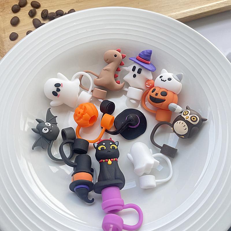 Halloween Pumpkin Silicone Straw Cover Cap For Stanley Tumbler Cup Accessories 30&40oz Reusable 9-10mm Large Diameter Sippy Plug