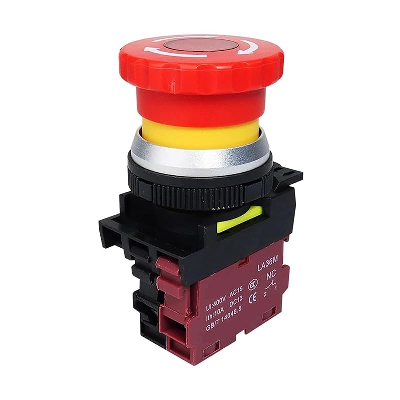 30mm LA36M Emergency Stop Push Button Switch Latching Self Locked Plastic Mushroom E-Stop Switch with Red LED Light 220v 12v 24v(Without