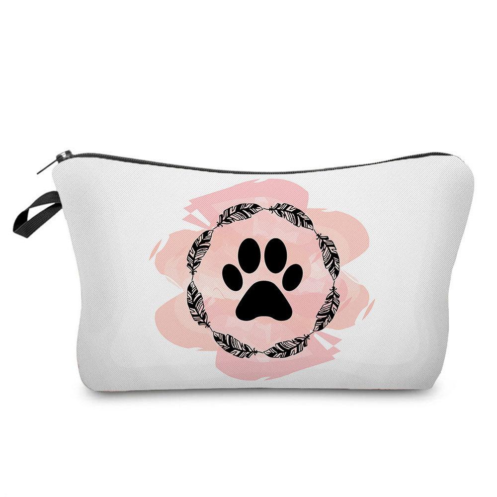Women Dog Paw Print Cosmetic Bag Toiletries Organize Travel Storage Case 6874