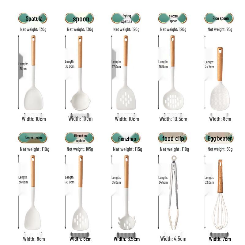 Ruhan Wooden Handle Silicone Kitchen Utensil Set