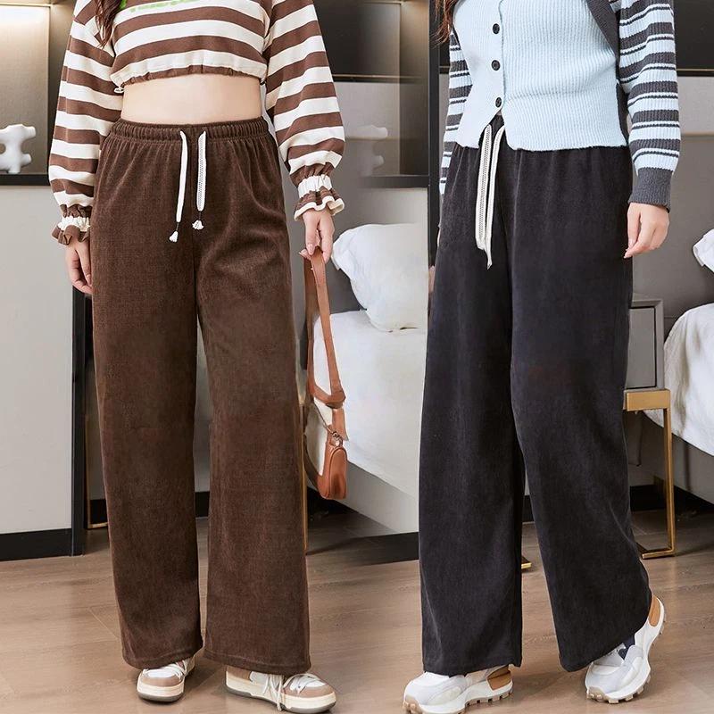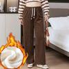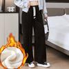 Pants for Women Plus Size Thickened Stretchy Elastic High Waist Long Trousers Solid Colour Fleece Casual Wide Leg Pants