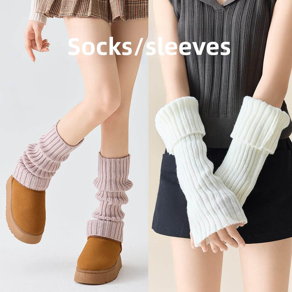 Women's Grey Knitted Leg Covers, Pile Socks, Versatile Calf Socks for Spring and Autumn, Women's Mid-calf Sleeves, Calf Socks, Long Socks
