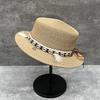 Ethnic Style Short Brim Flat Top Straw Hat Women'S Summer Travel Vacation Bohemian Flat Edge Visor Top Hat