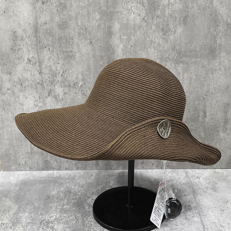 Flip Button Big Brim Sun Protection Straw Hat Women'S Summer Versatile Travel Visor Seaside Vacation Sun Hat