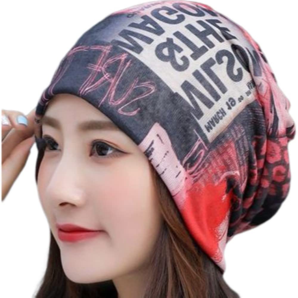 Women's 3-Way Beanie Neck Warmer Snood with Ponytail and Hair Hole, All-Over Print, Watch Cap, Turban Cap, Headband with Flower, Leaf, and Logo Design, Casual, Stylish, Everyday Wear, Spring, Autumn, and Winter, Unisex, Size 56cm, Suitable for Men and Women