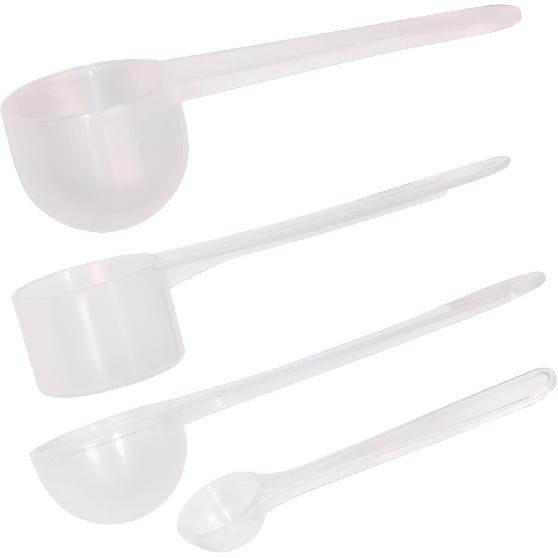 ONLYKXY 4pcs Clear Long Handle Plastic Measuring Spoons Coffee Protein Milk Powder Scoops Spoon Kitchen Tools (1g/3g/5g/10g)