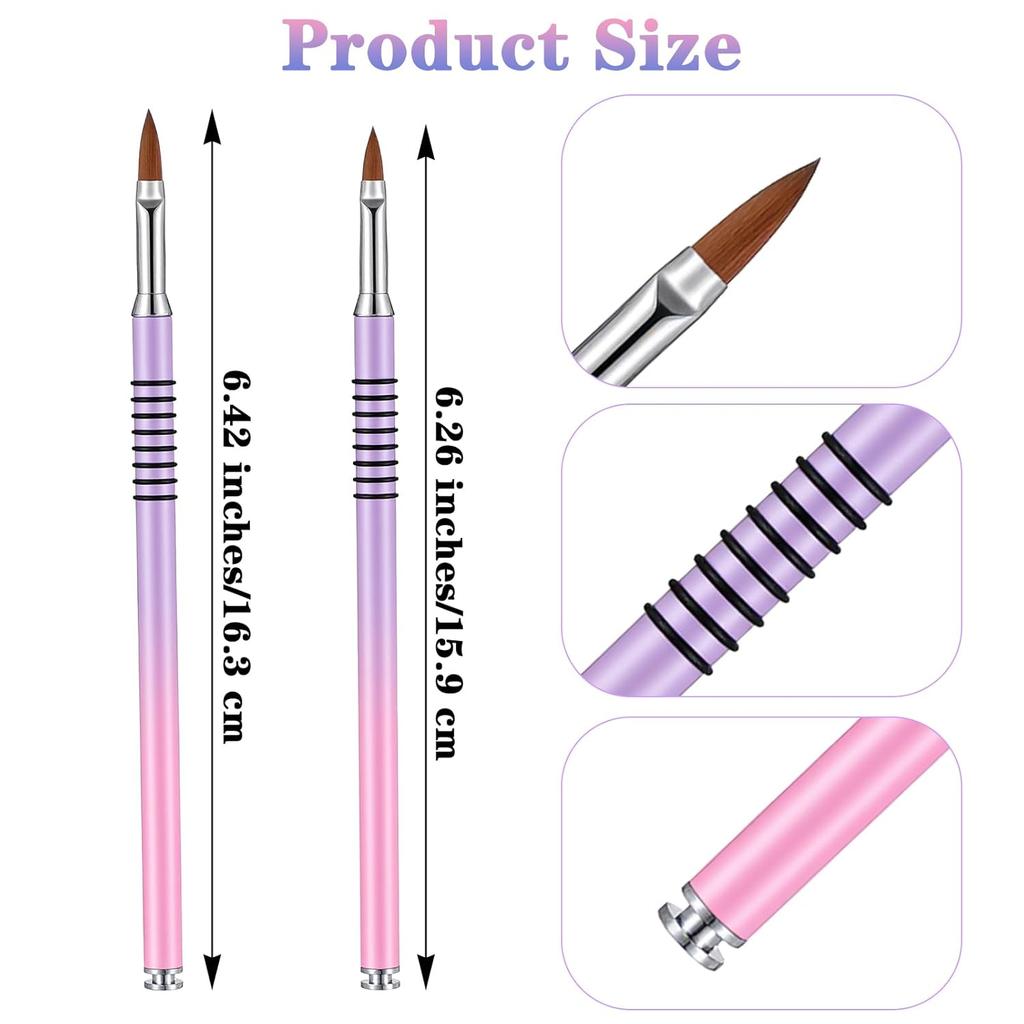 2PCS Acrylic Brushes for Nails, Size 2, 4 Professional Manicure Brush Set Purple-Pink Gradient Nail Tools Non-slip for Acrylic Powder, Nails