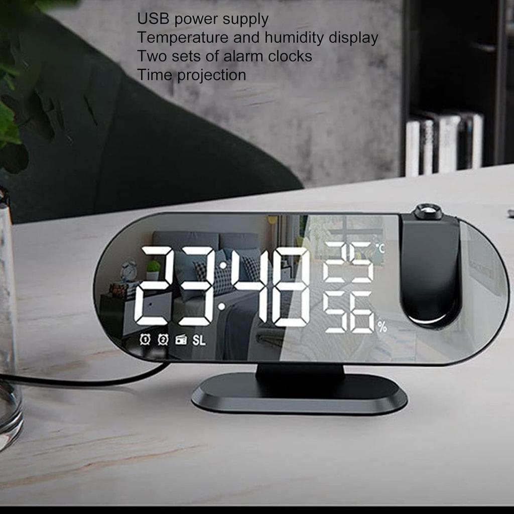Projection Alarm Clock, USB Powered Mirror Display Design Clock, 180 Degree Rotation High Brightness LED Light Source Ceiling Digital Alarm Clock