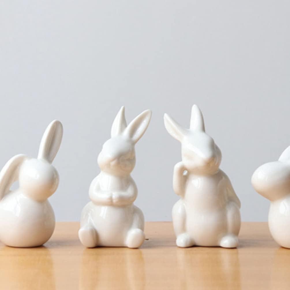 Happyyami Garden Bunny Figurines Landscape Bunnies Decoration 3Pcs Ceramic Bunny Rabbit Figurine Easter White Bunny Figurines Mini Tabletop Rabbit