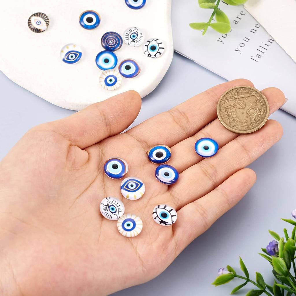 Pandahall 60Pcs Evil Eye Glass Cabochons - 12mm Half Round Flatback Dome Lucky Eye Cameo Gem Cover Beads for Pendant Props Photo Jewelry Making