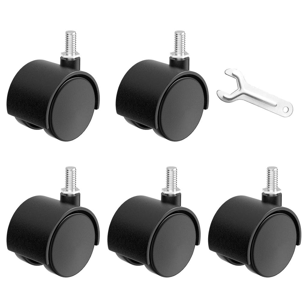 5 PCS 2 Inch Nylon Plastic Replacement Casters Rotating Furniture Wheels Floor Protection Office Chair Rotating Casters Threaded Rod Black