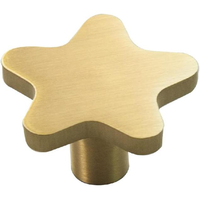 Decorative Brass Kitchen Cabinet Knobs Gold Star Drawer Dresser Knob Pulls Furniture Cupboard Handles Modern (4), Medium