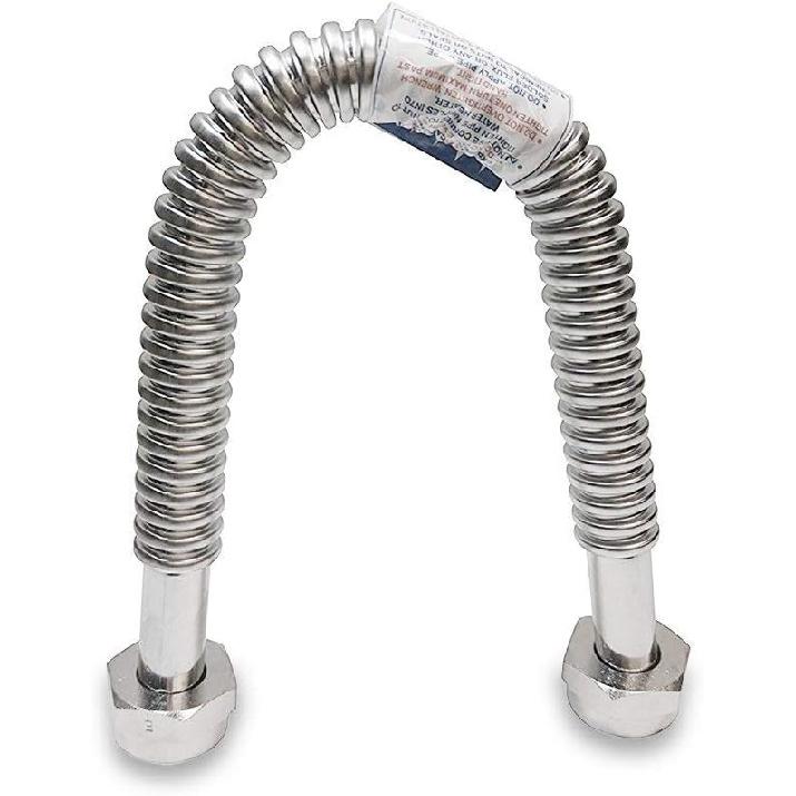 2 Pack Heavy Duty Durable Stainless Steel Corrugated Water Flex Connector with Extra Thick Washers for Water Heater and Water Softener (18x1 FIP)