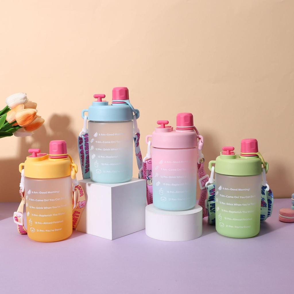 600ML Gradient Plastic Water Bottles Portable Large Capacity Women Straw Cup Double Drinking Sport Water Pot For Students Girls