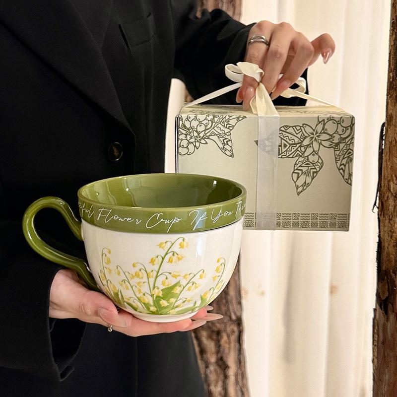 High-value Large-capacity Coffee Cup Ceramic Water Cup with Lid Home Breakfast Milk Cup Gift Girls' Souvenir