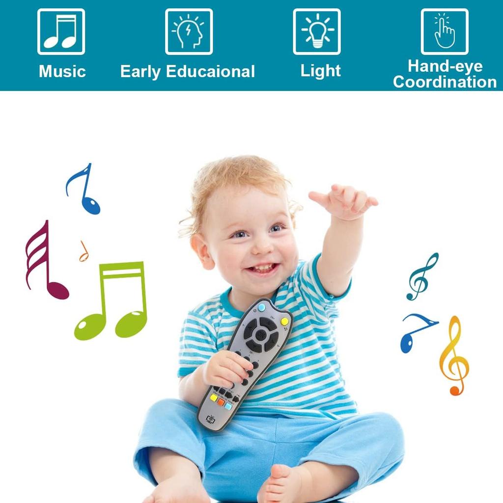 Kids Realistic TV Remote Control with Soft Light and Sound, Early Educational Learning Remote Toy with 3 Different Language, Musical Remote Toy for 6