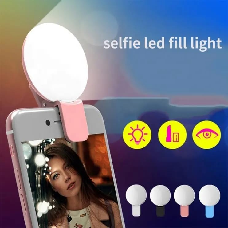 Clip-on LED Selfie Ring Light, Small Pocket-Size, 3 Brightness Levels, Rechargeable, Phone Camera Light, (White)