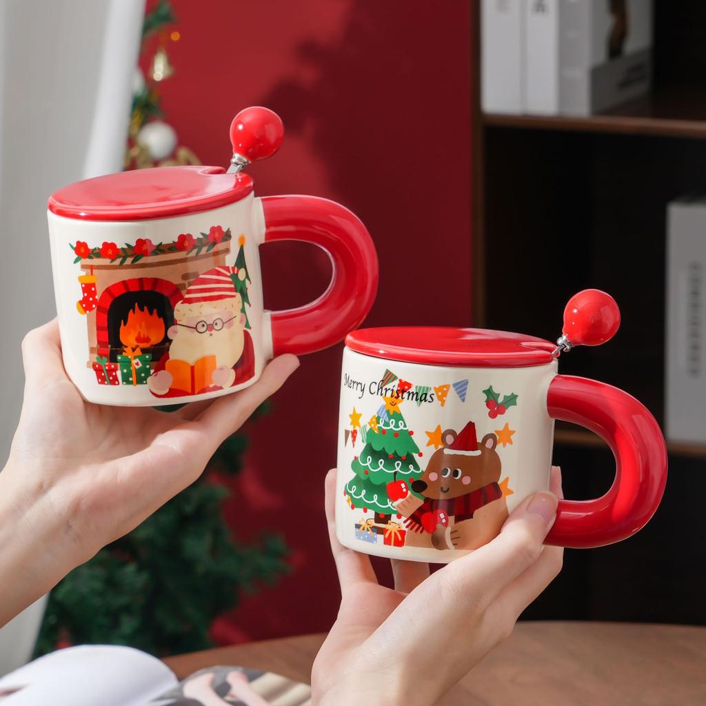 Christmas Gift Mug with Lid Spoon Santa Cup Christmas Eve with Small Gifts for Employees and Customers