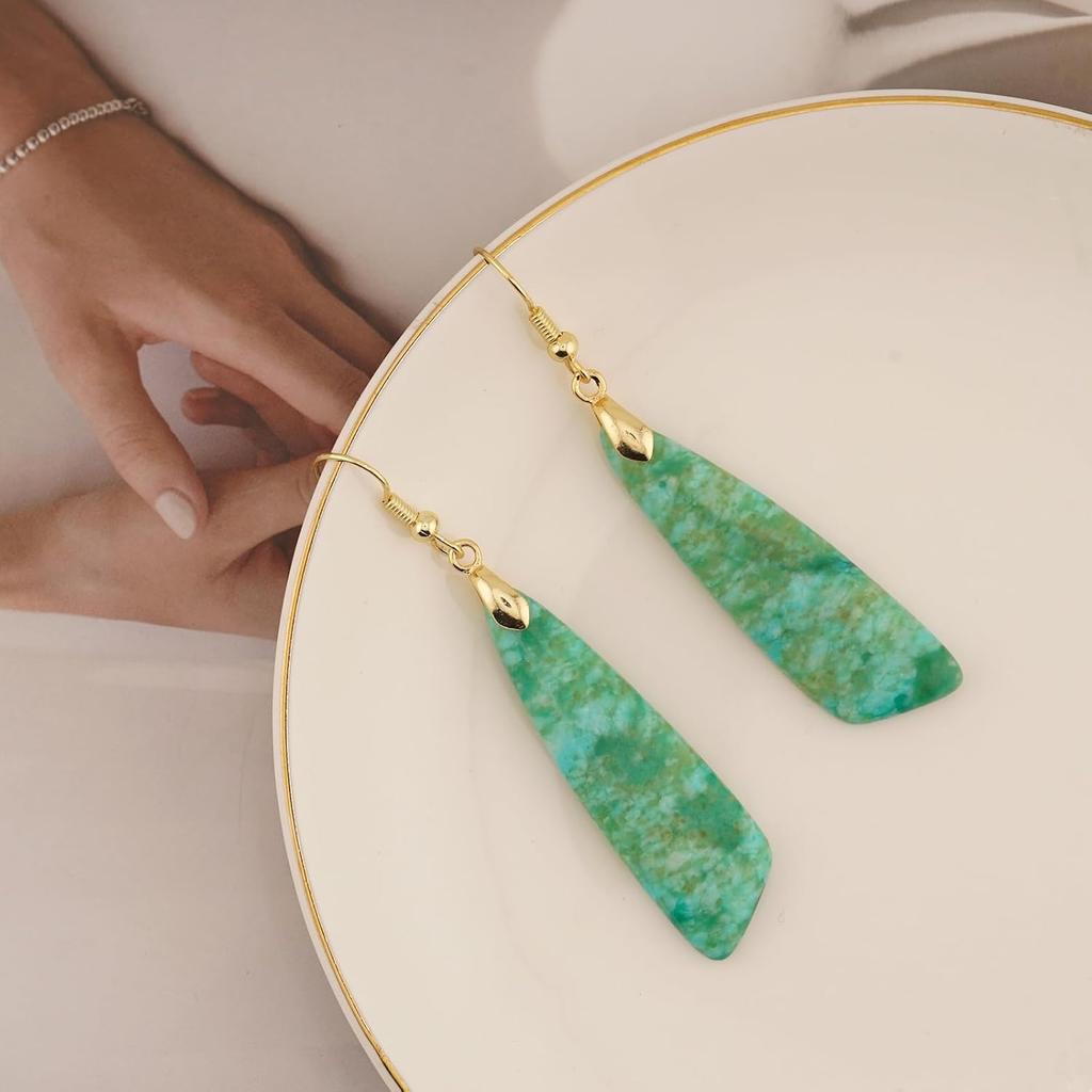 Jasper Stone Earrings for Women Trendy Dangle Earrings Fishhook Drop Earrings