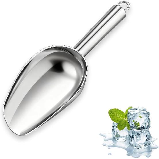 Easy to Clean: Featured with mirror finish appearance always keep the ice scoop shiny and looks as good as new. Smooth and nonstick surface make it easy to clean with water