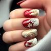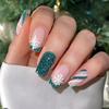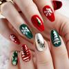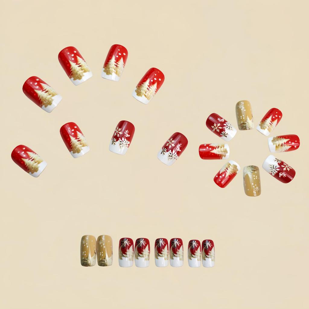 Christmas Press On Nails Medium Square Fake Nails with Gold Snowflake Christmas Tree Designs Xmas Red False Nail Acrylic Winter Snow Stick On Nail